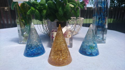 円錐形やピラミッド型のオルゴナイトを製作するうちに